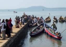 Pirogues empruntées pour se rendre à Room en partant du port de Boulbinet à Conakry