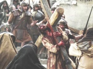 D’où une partie des critiques qui sont adressées à l’endroit de ce film : avoir privilégié l’image au détriment du message ; avoir pris le corps en tenailles, alors qu’il fallait faire bouger l’esprit ; avoir fait déferler les extrêmes, alors qu’il aurait été indiqué de se bâtir sur des lignes médianes. Quelques deux heures d’images ainsi, qui coulent dès lors de manière sanguinolente, comme si ce qu’il y avait à retenir de cette épreuve n’était la souffrance d’un homme et non l’horizon que cette souffrance est sensée apporter à la communauté des chrétiens auxquels elle s’adresse. Démarche de documentaire qui tient sur les douze dernières heures de la vie du Fils de Dieu sur la terre, du Mont des Oliviers jusqu’au transpercement de son corps par des clous, au sommet du Mont Golgotha. Images filmées de manière grandiloquente sur un corps lacéré par la douleur et la mort. Des paroles rares, mais Ô combien pensantes ; un langage – l’araméen, langue de base de Jésus – rendu glauque et incompréhensible, réduit à de sobres sous-titrages et dès lors exposé à toutes sortes de malentendus. Débouchant sur un film lourd et opaque, visqueux, tenaillant de l’intérieur comme de l’extérieur, sur la fin d’un homme que vient davantage abîmer une mise en scène qui se montre quelques fois d’un expressionnisme proche de l’obscénité.